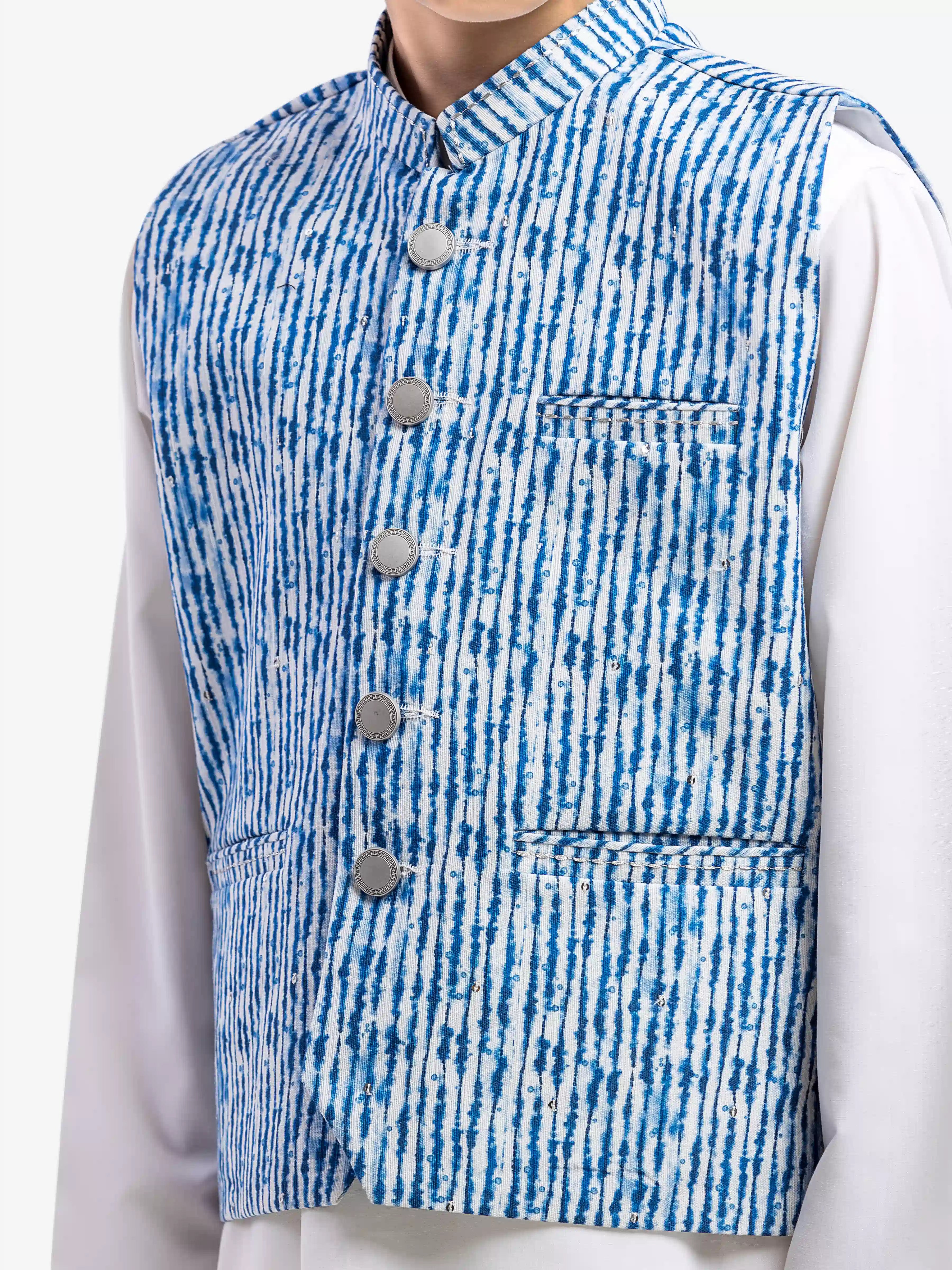 - Style: Basic Kurta & Pajama with Two Tone Printed Waistcoat