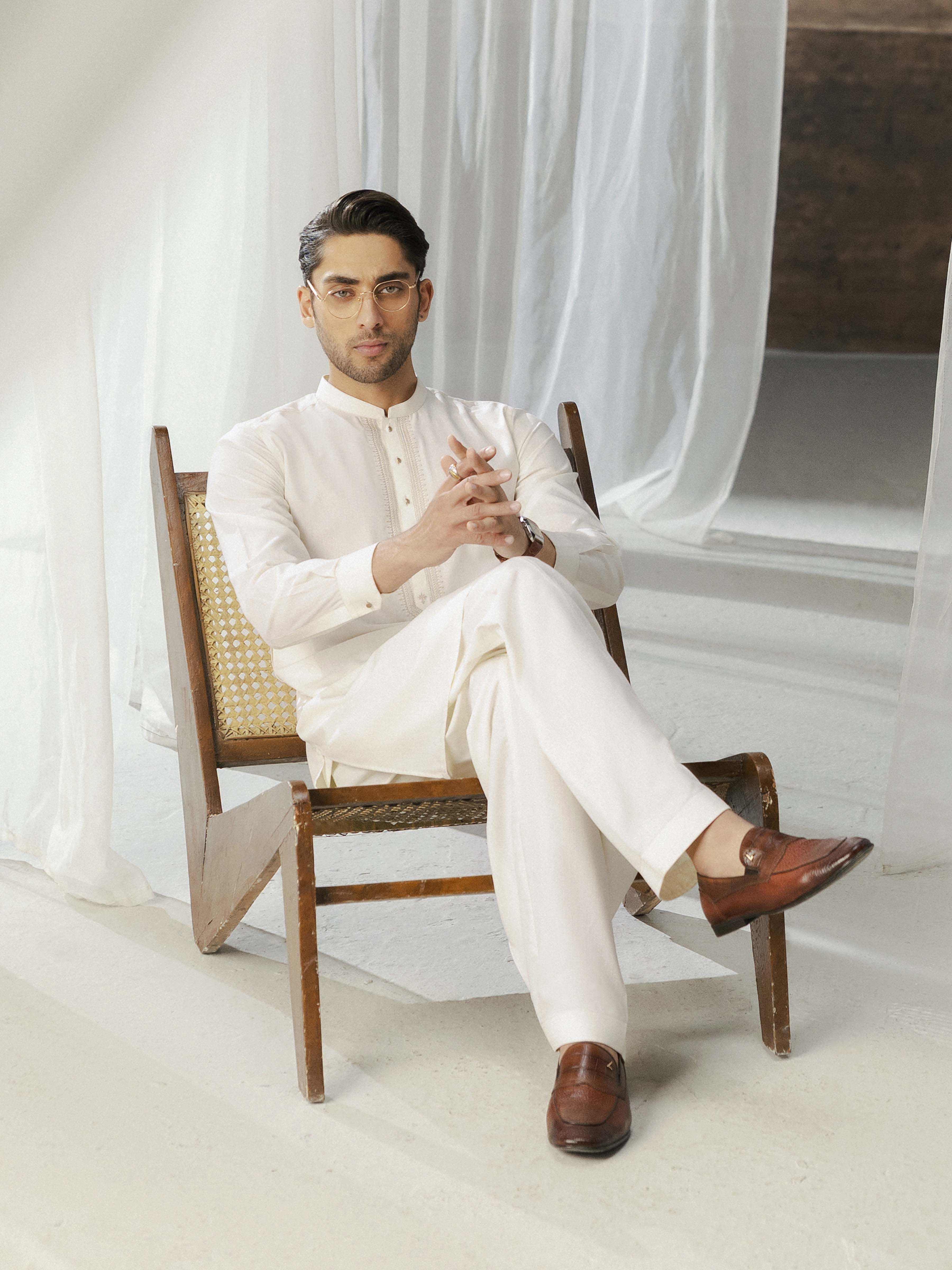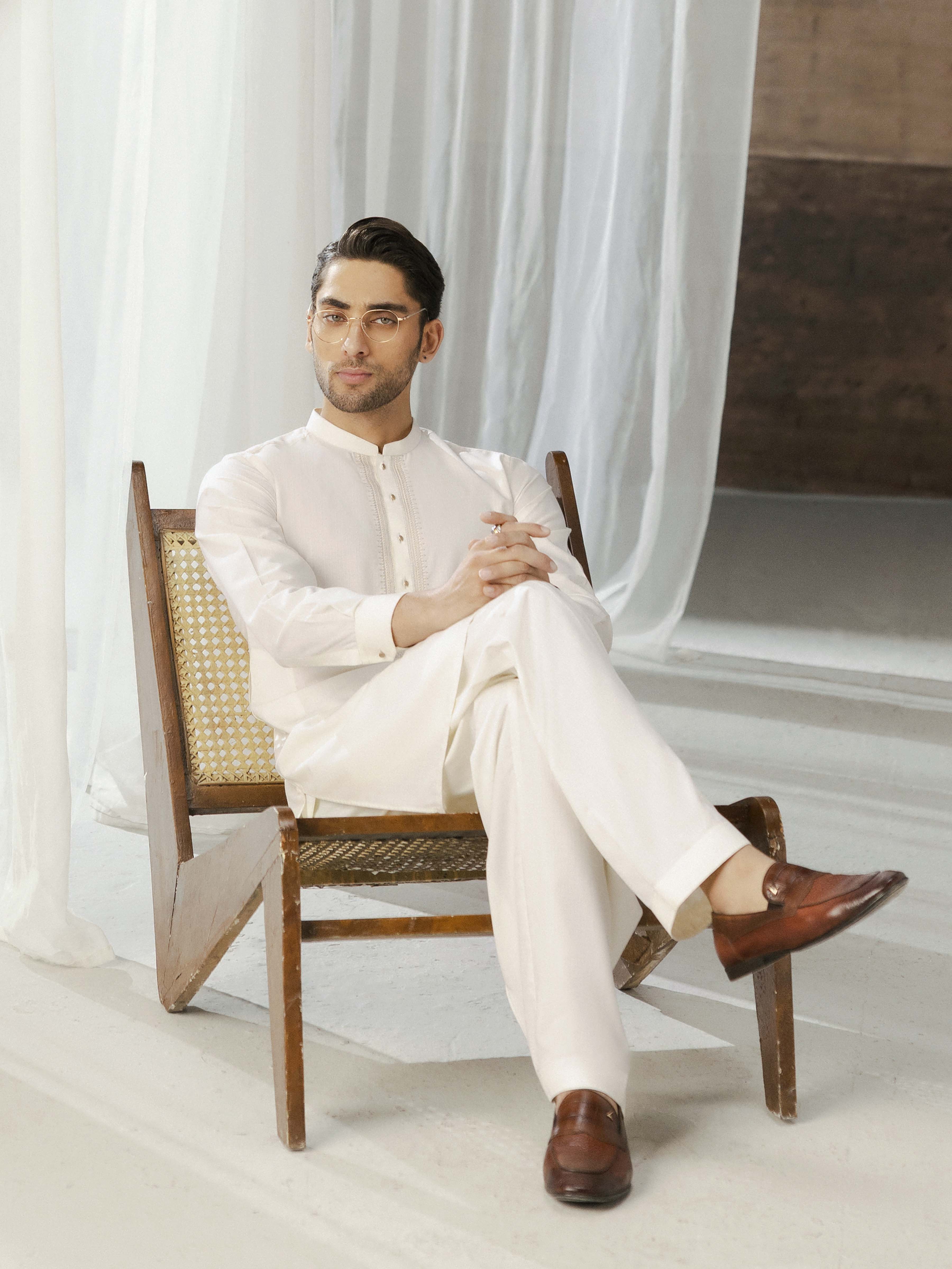 - Style:Β Embroidered Kurta with Band Collar