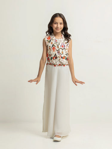 - Style: Plain Jumpsuit with Fancy Front, Embroidered Waist & Printed Khaddar Koti