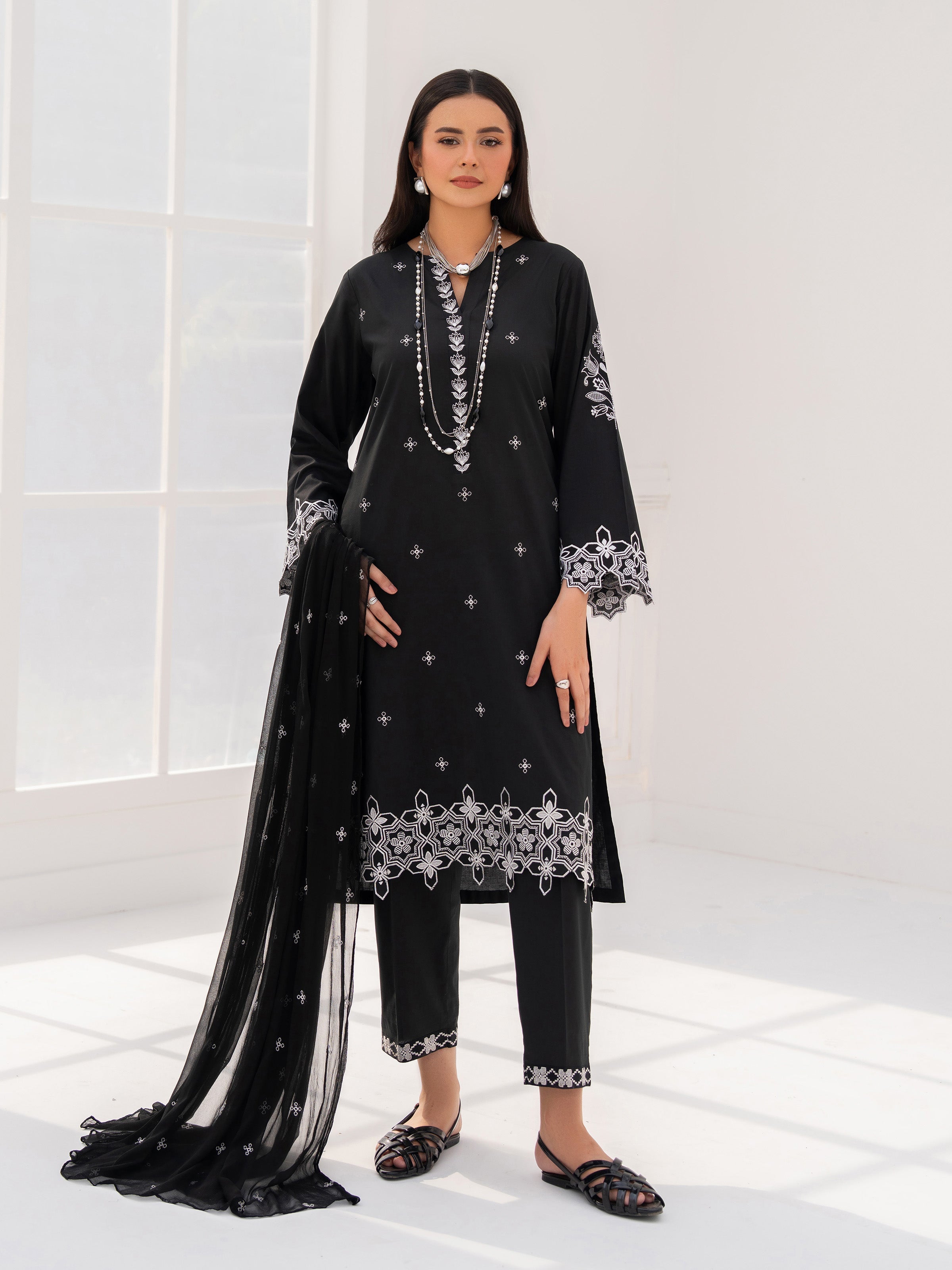 - Style: Plain Trouser with Embroidered Bottom
