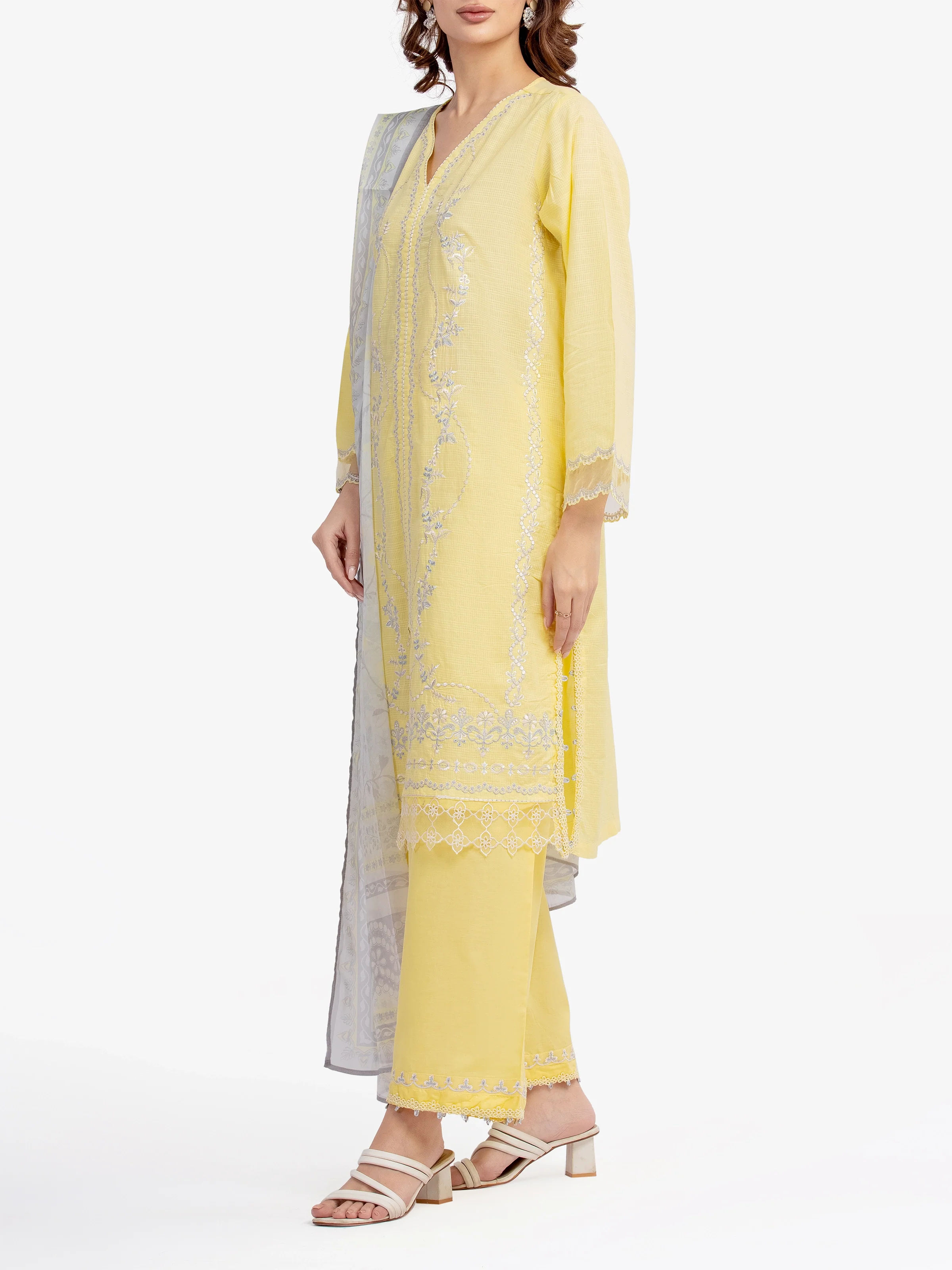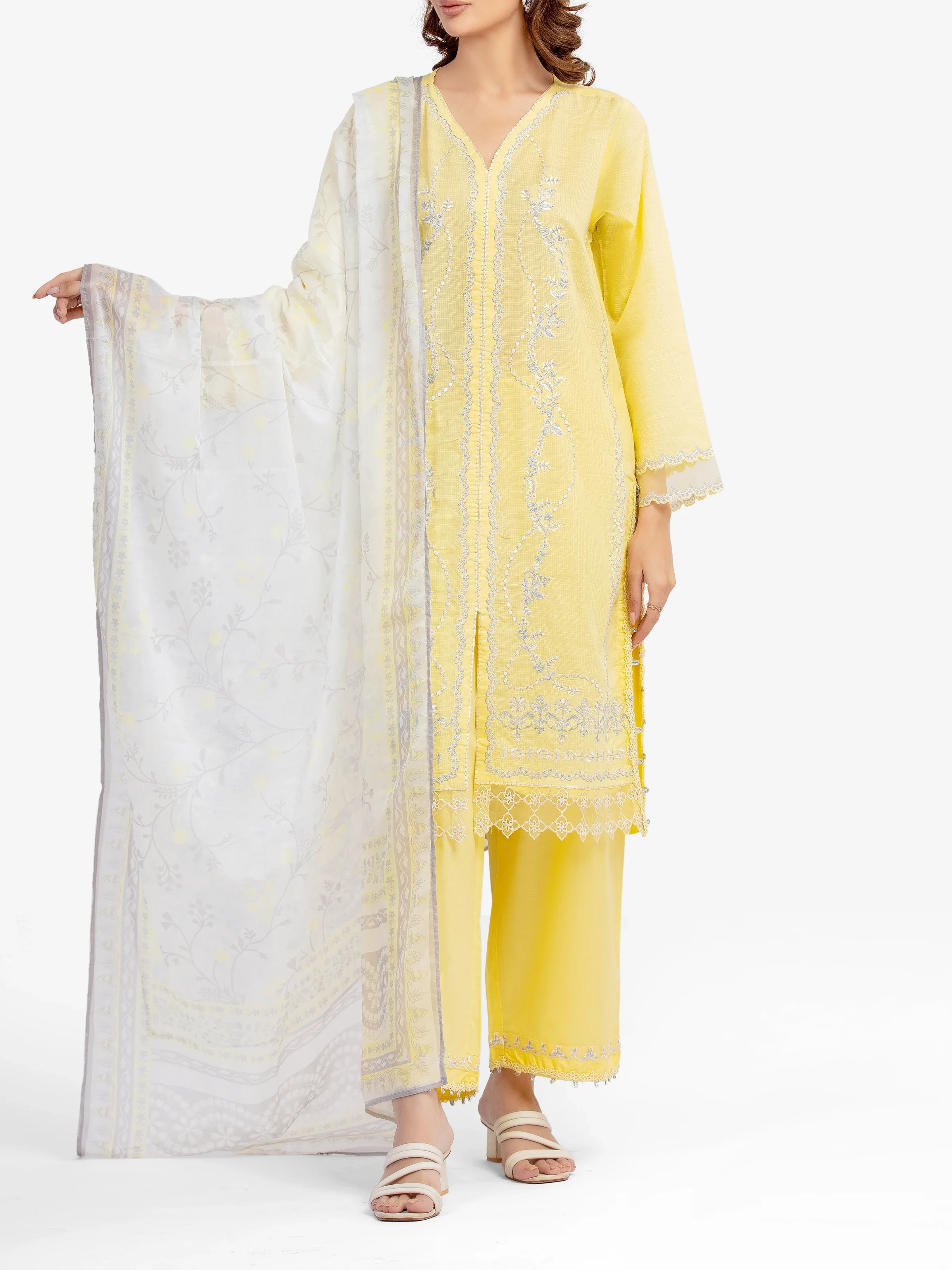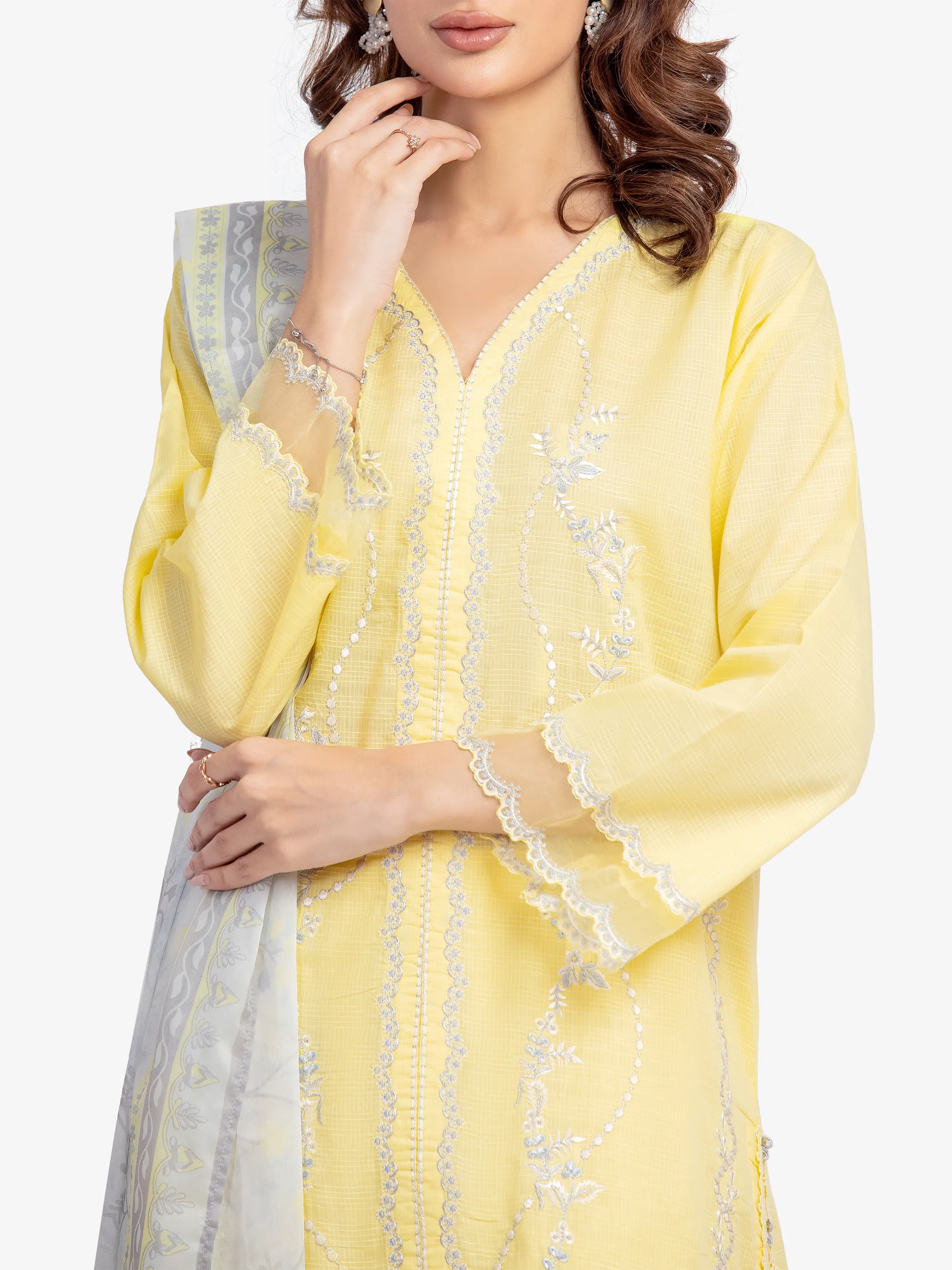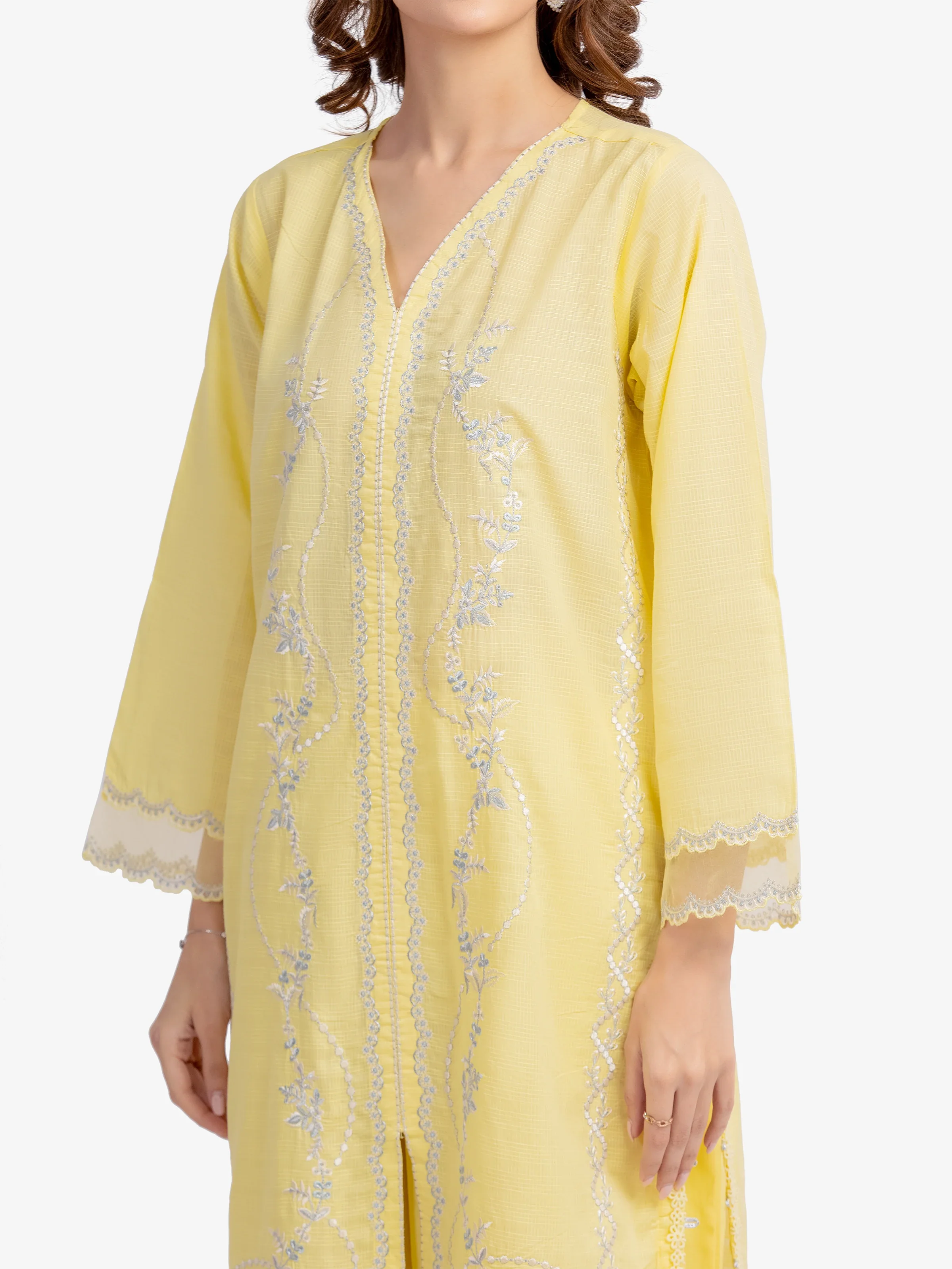 - Style: Embroidered Shirt with Fancy Organza Border on Sleeves