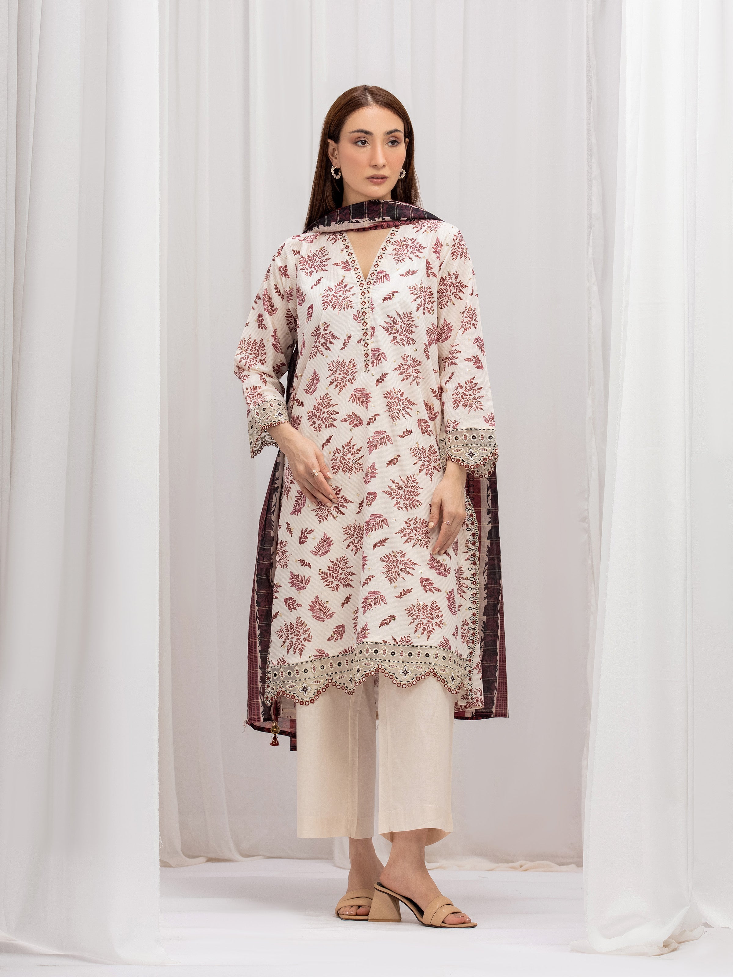 - Style: Printed Shirt with Embellished Placket & Organza Embroidered Border on Sleeves & Daman