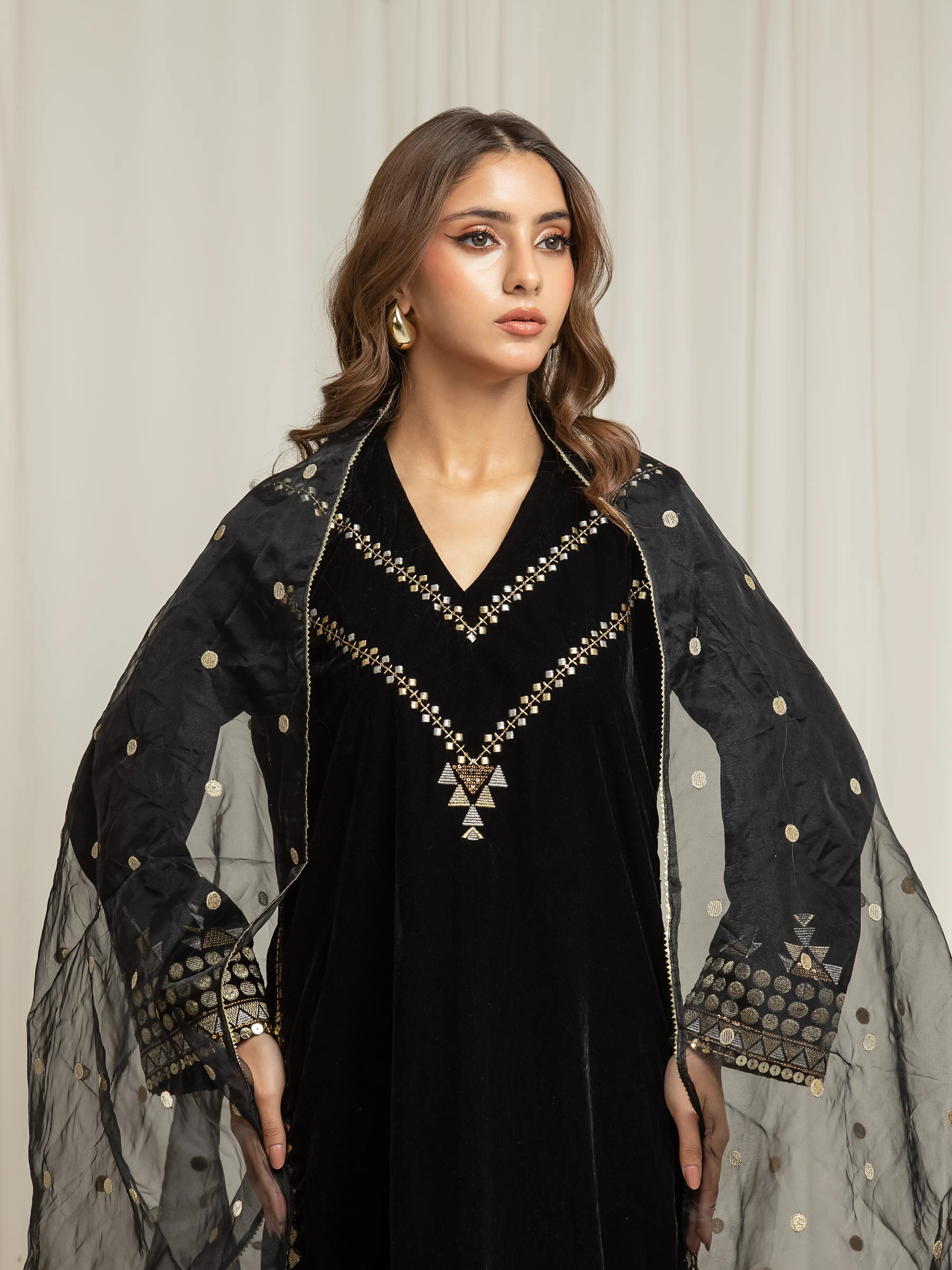 Embroidered Velvet Suit