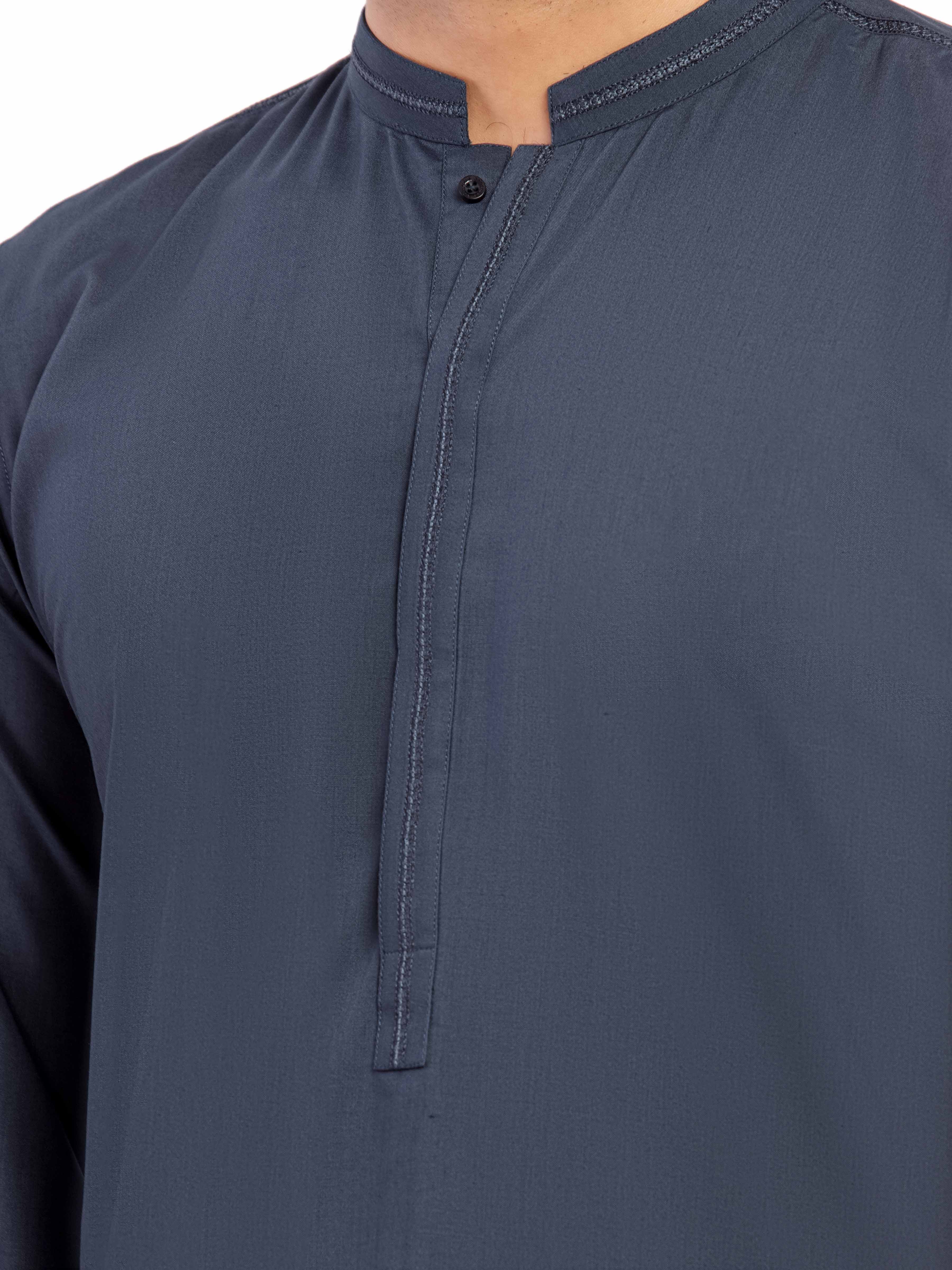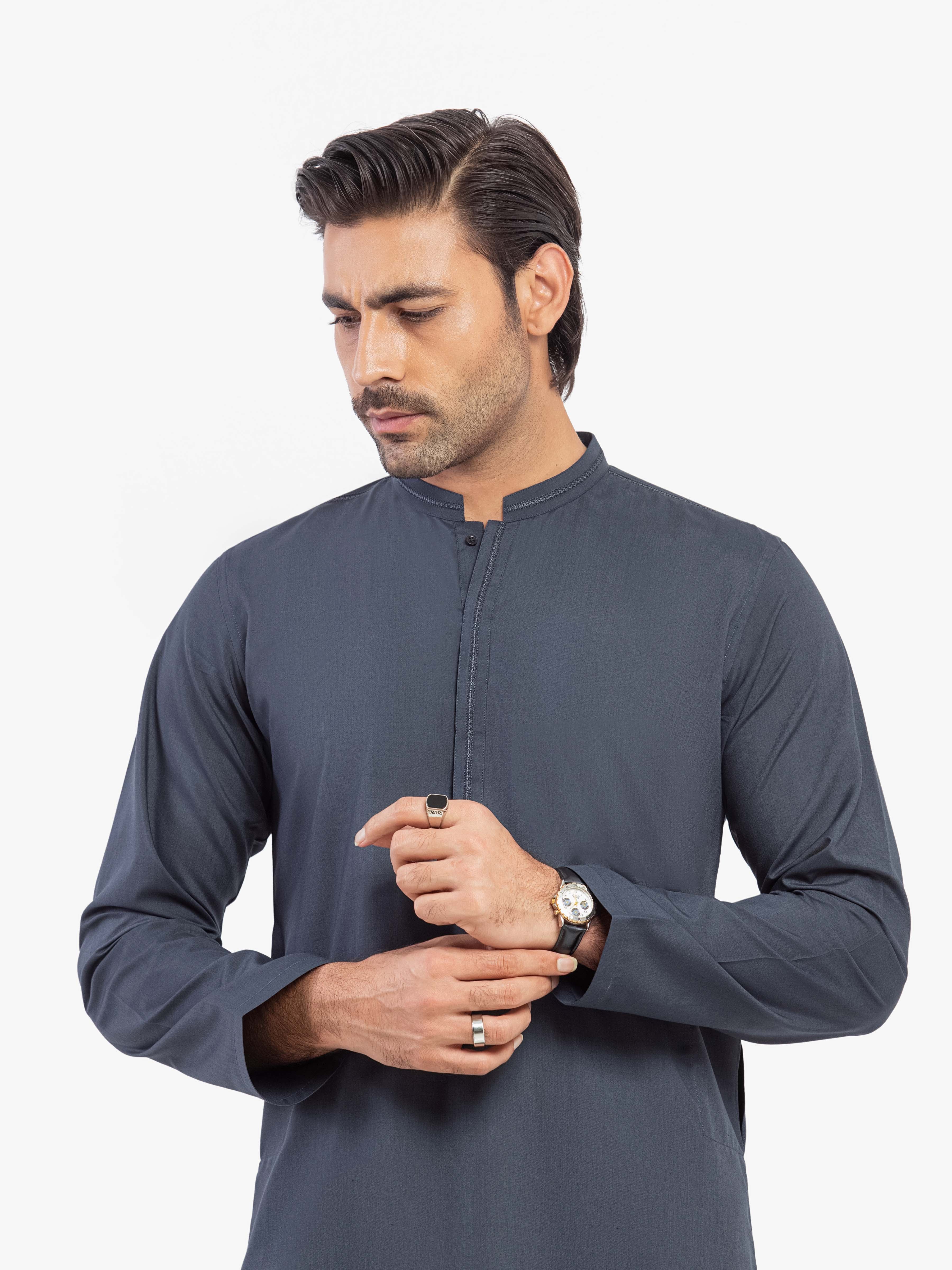 - Style: Plain Kurta with Embroidered Collar & Placket