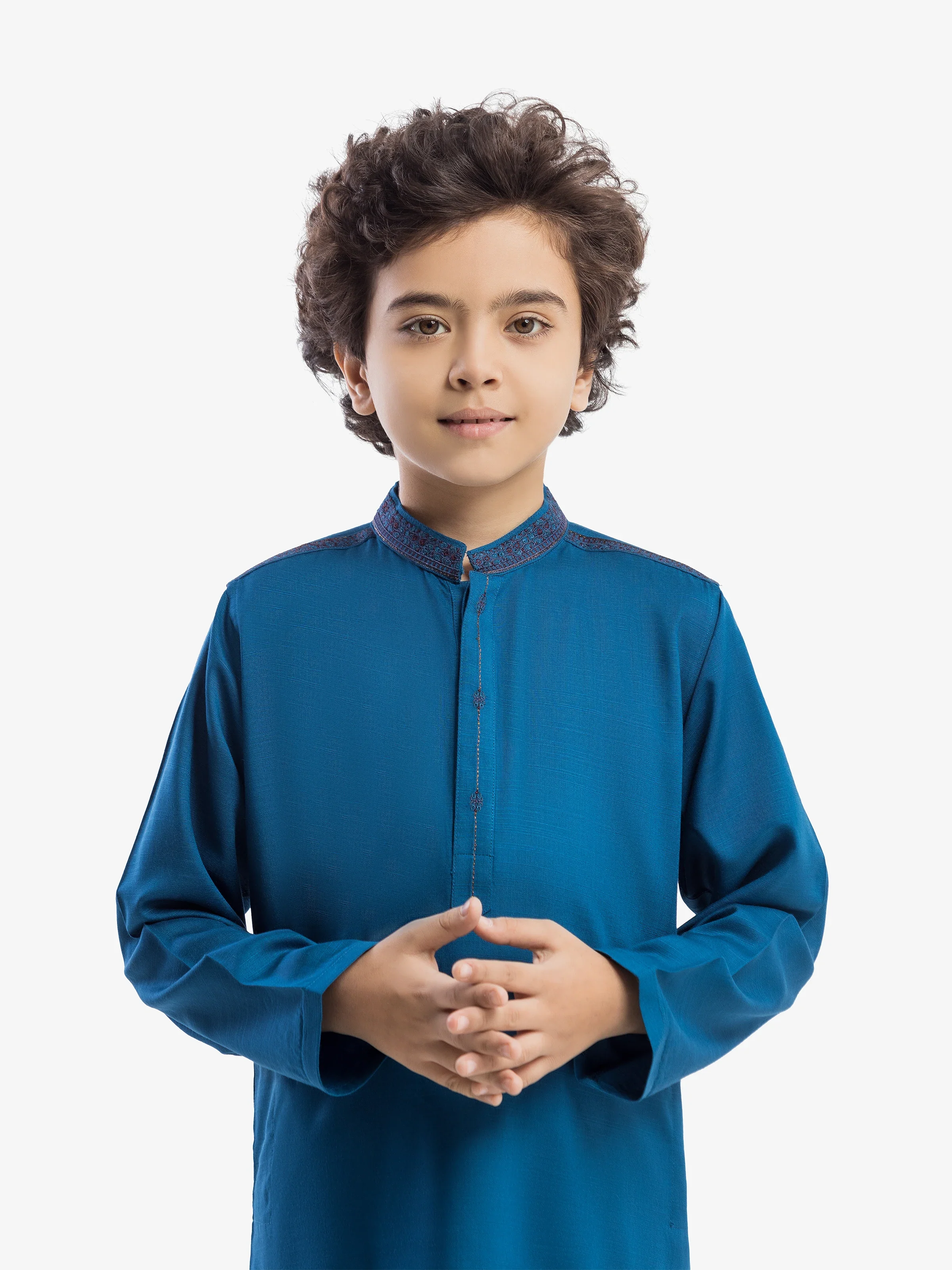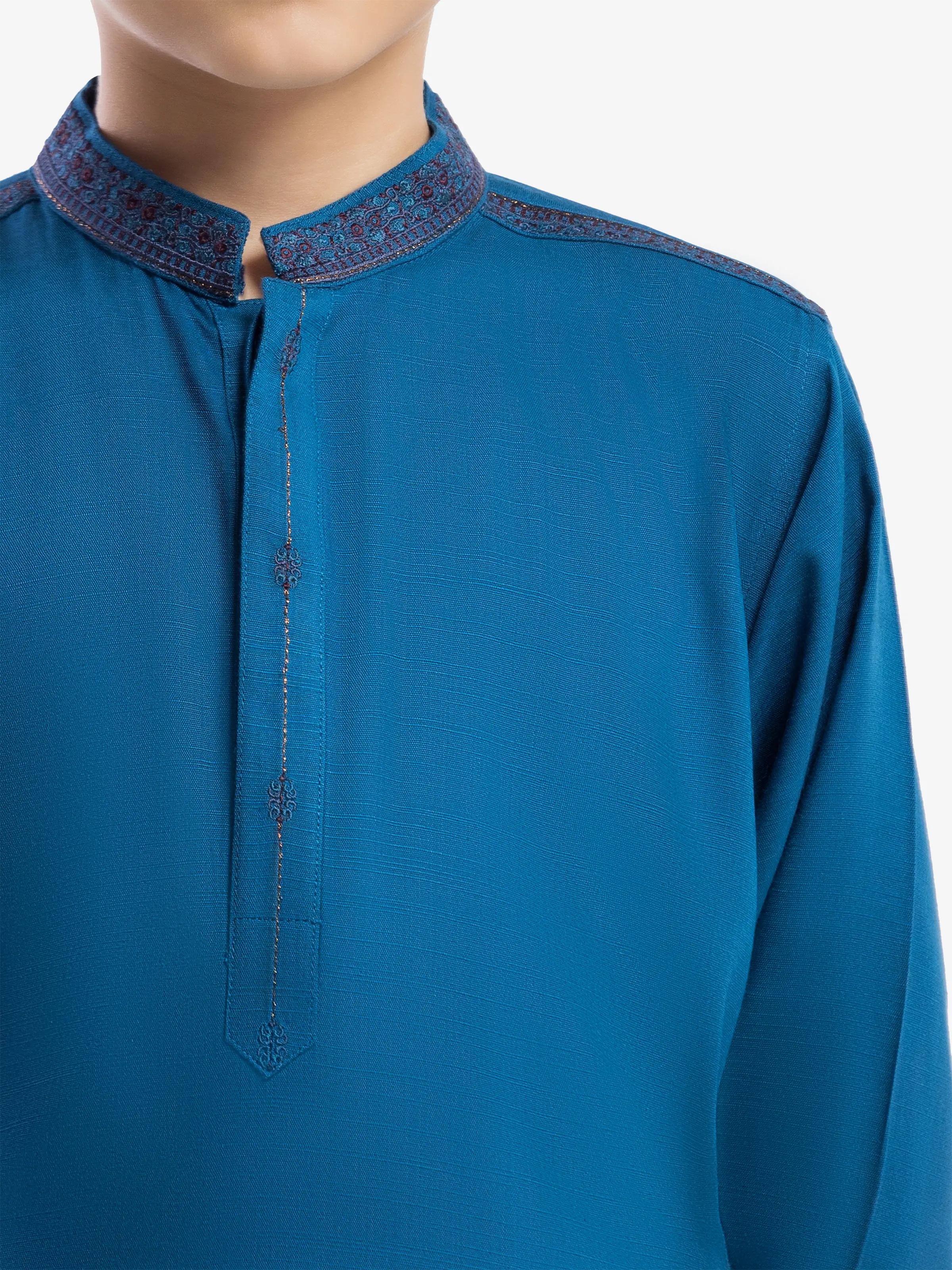 - Style: Embroidered Kurta with Band Collar