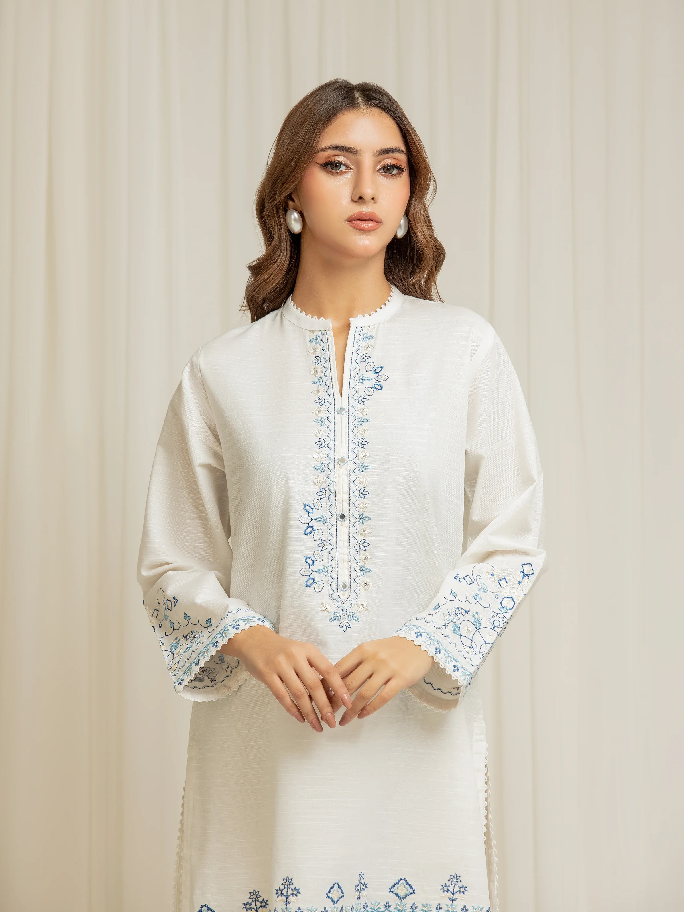 - Style:Β Embroidered Shirt with Embellished Placket