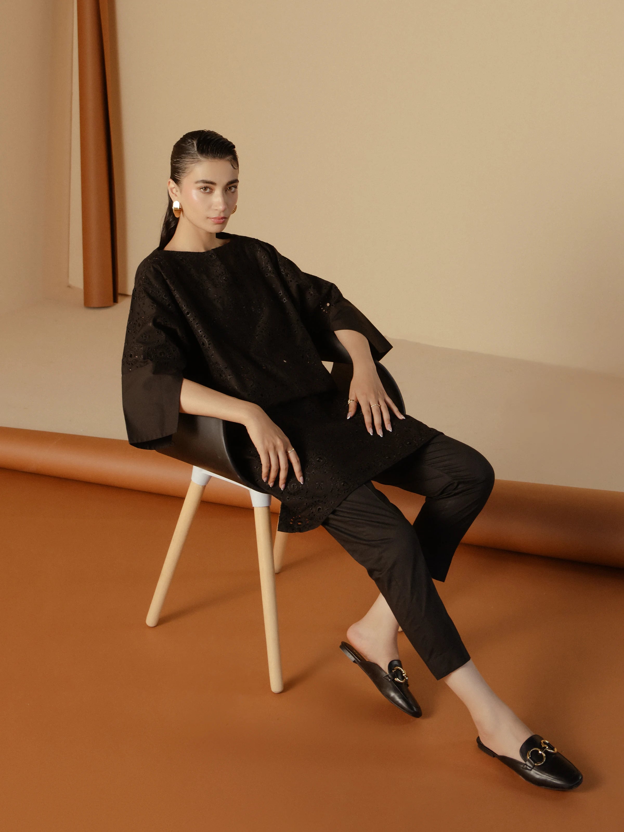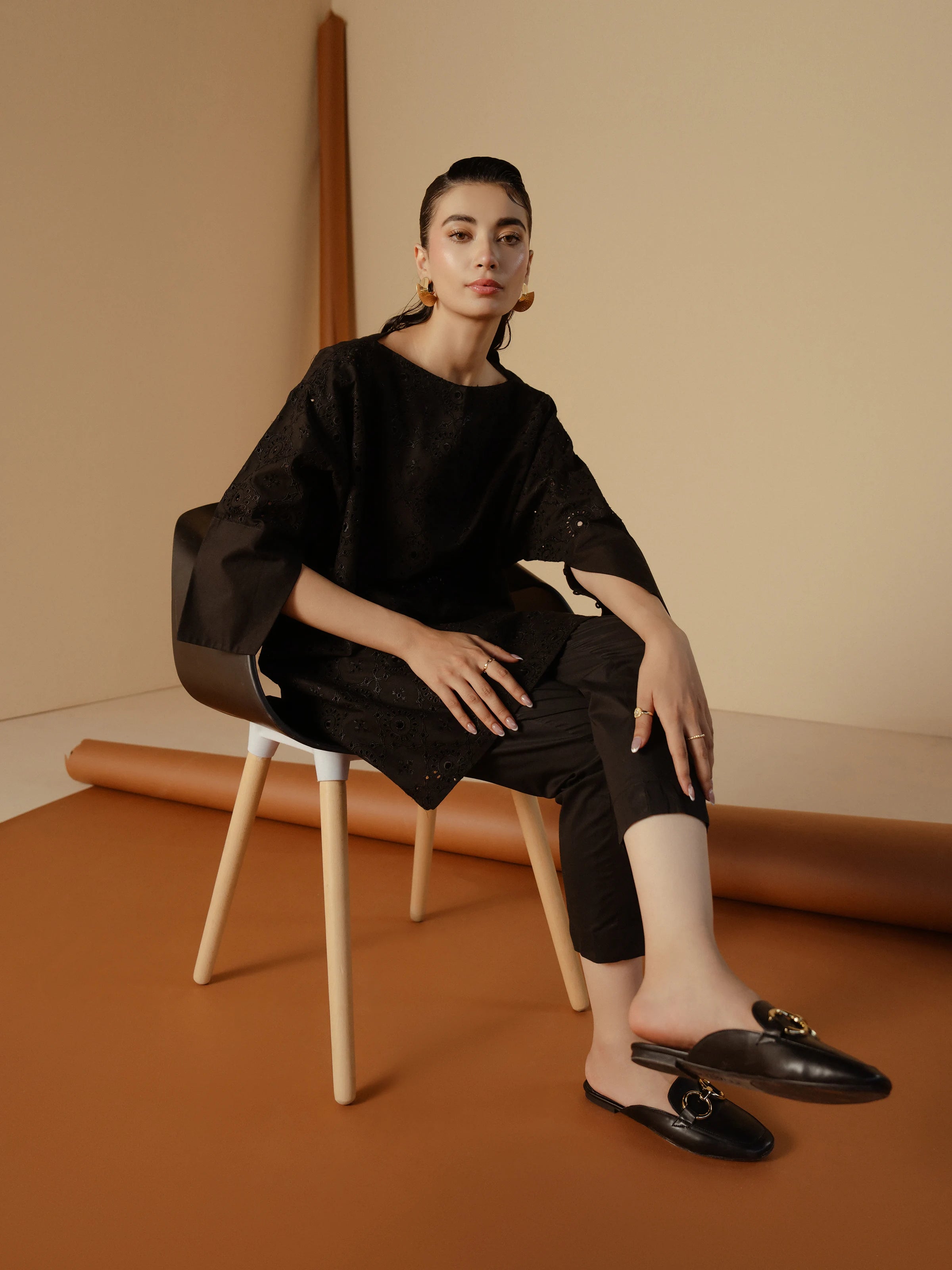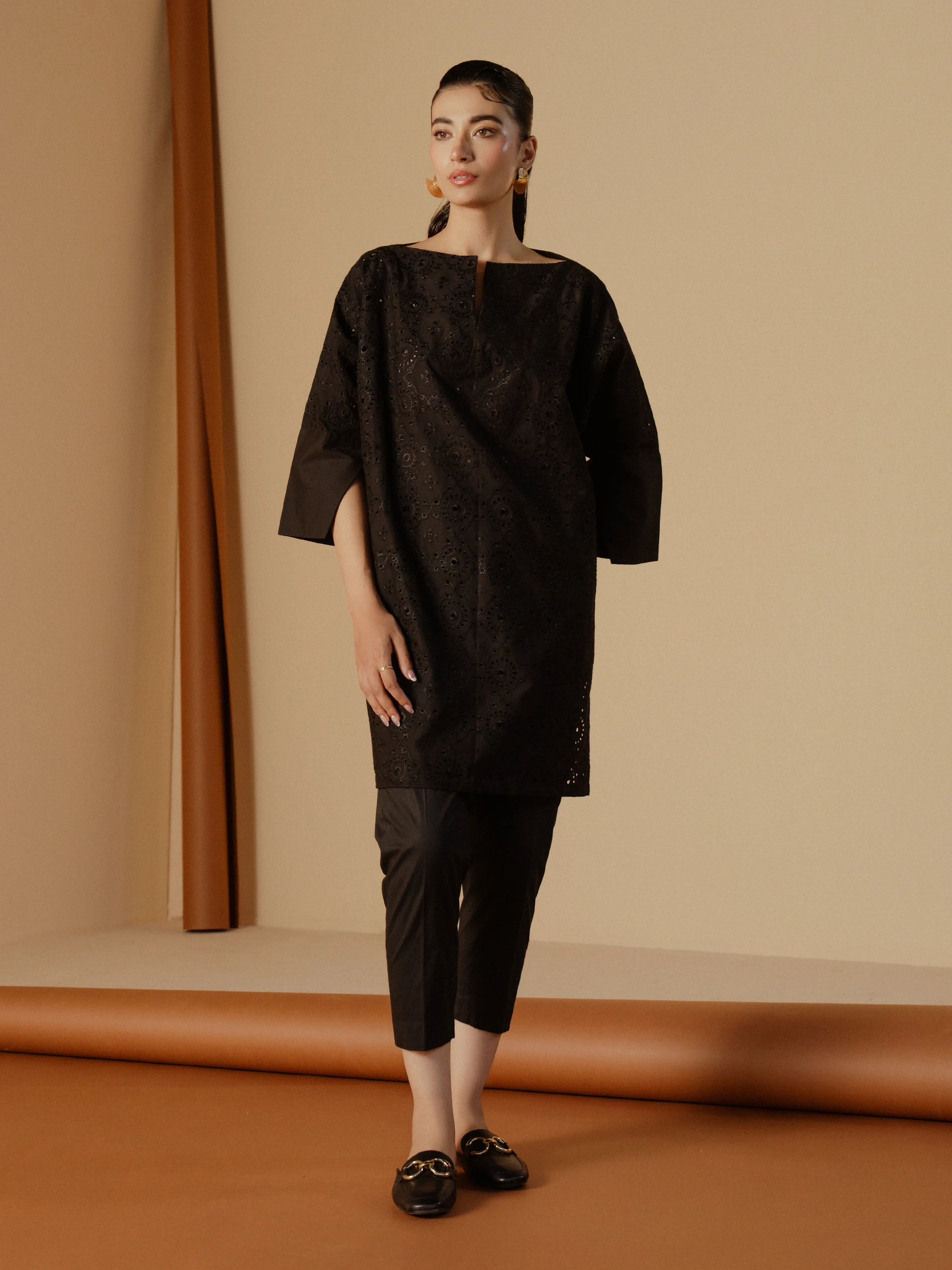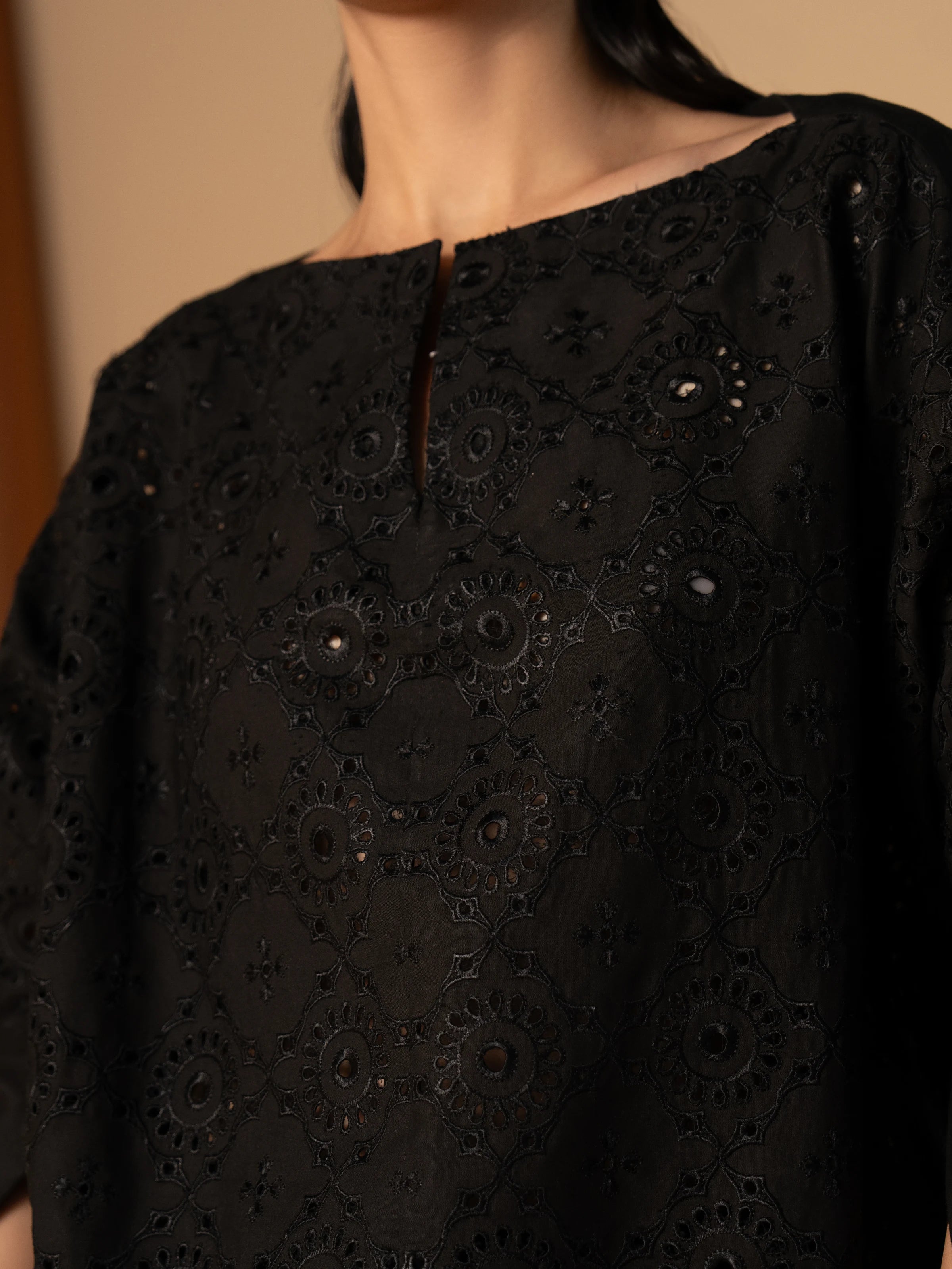 - Style: Schiffli Embroidered Drop Shoulder Kurti