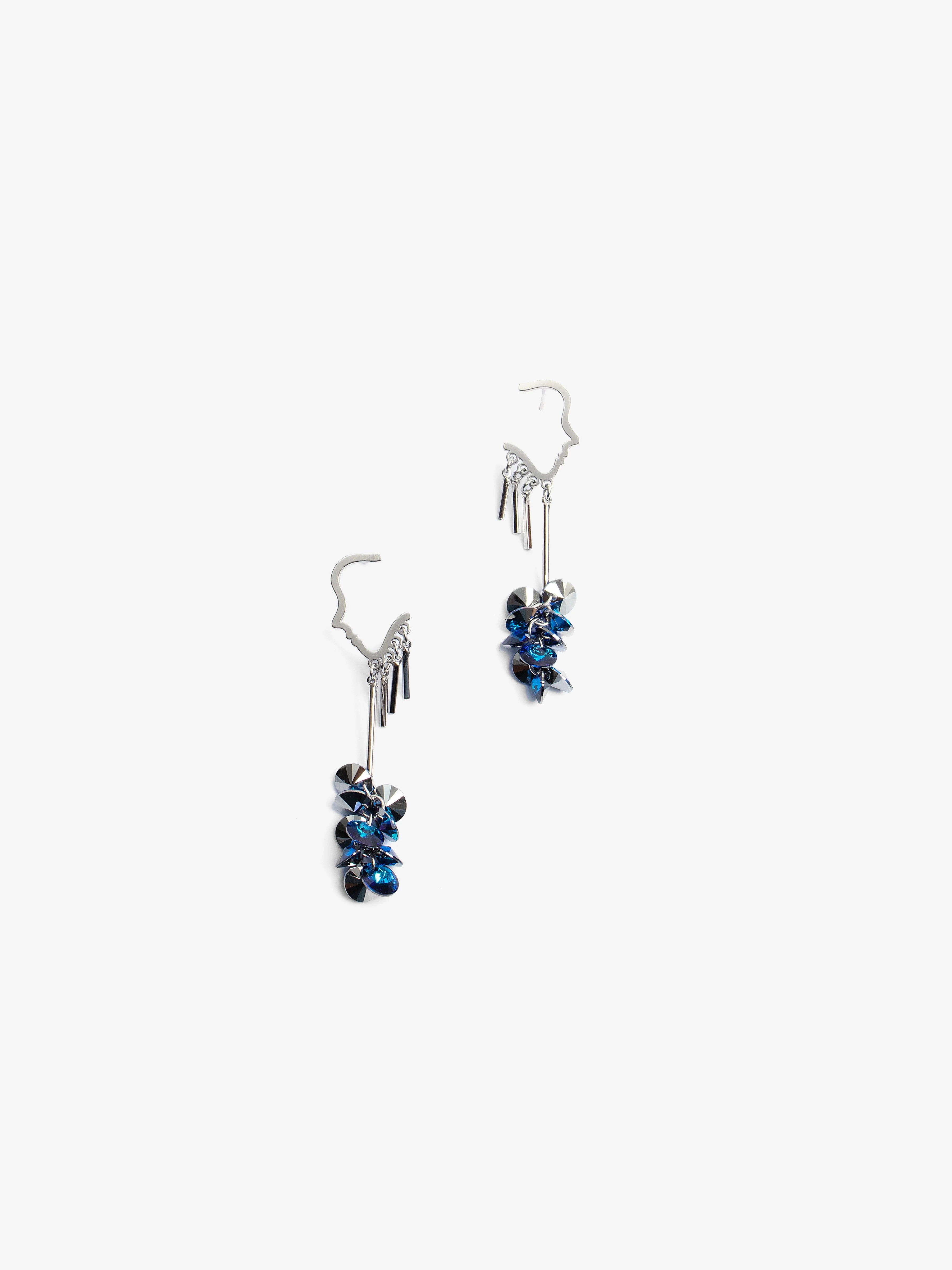 Break away from the usual with these drop earrings made with an artistic flair and blue gems that turn heads with their bold style.
